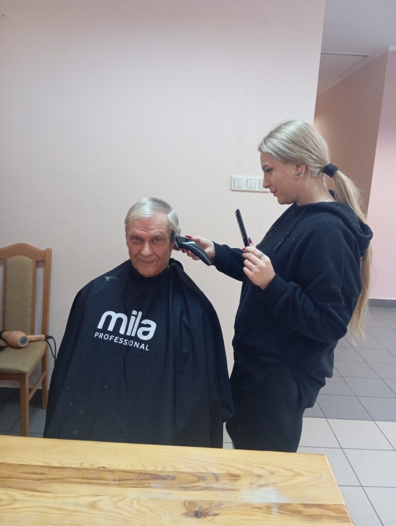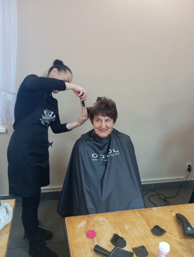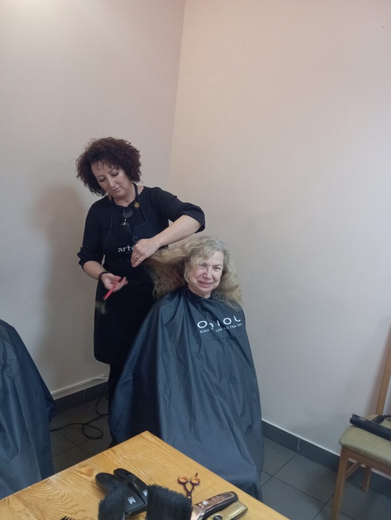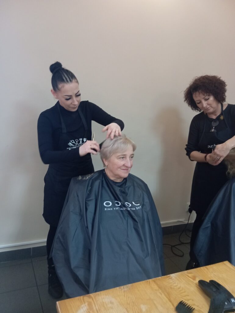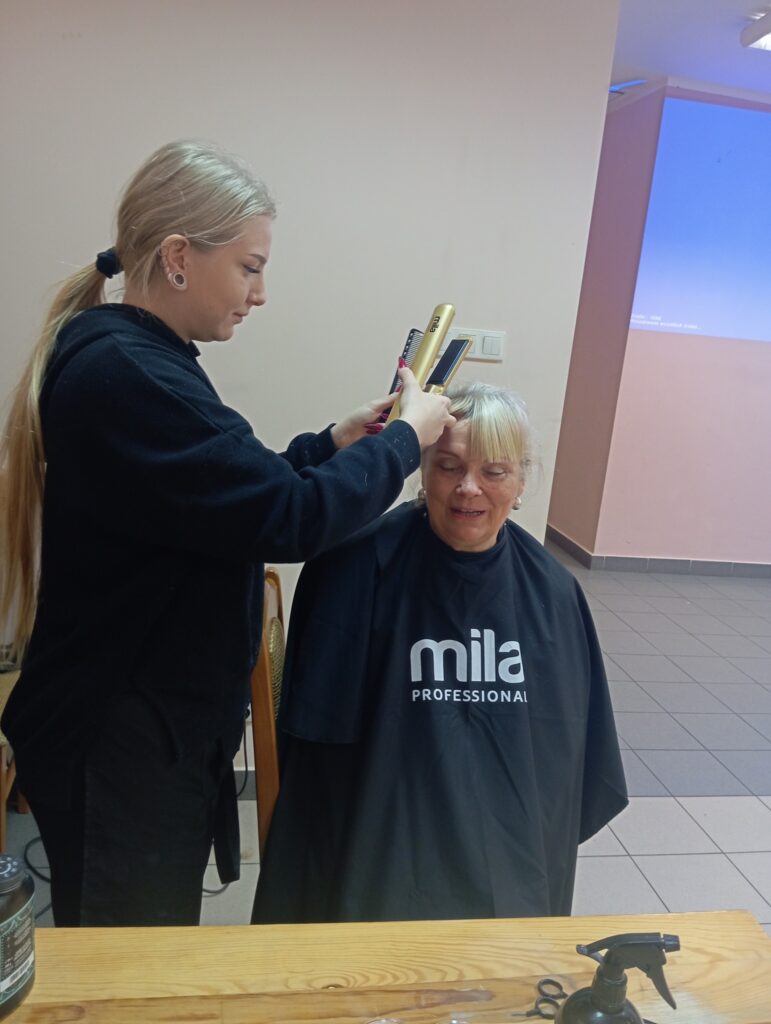 Na początku nasi seniorzy oddali się w ręce przemiłych Pań fryzjerek z salonu Salon Fryzjerski „Świat Włosa” Mirosława Polkowska. Jak widać na załączonych zdjęciach niektóre nasze panie przeszły prawdziwe metamorfozy ![]()