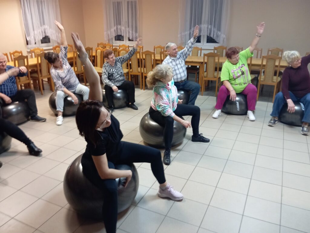 W trakcie ćwiczeń nasi seniorzy zmierzyli się z koniecznością utrzymania stabilność podczas wykonywania różnych ruchów i niby proste ćwiczenia stały się wyzwaniem dla całego układu mięśniowego ![]()